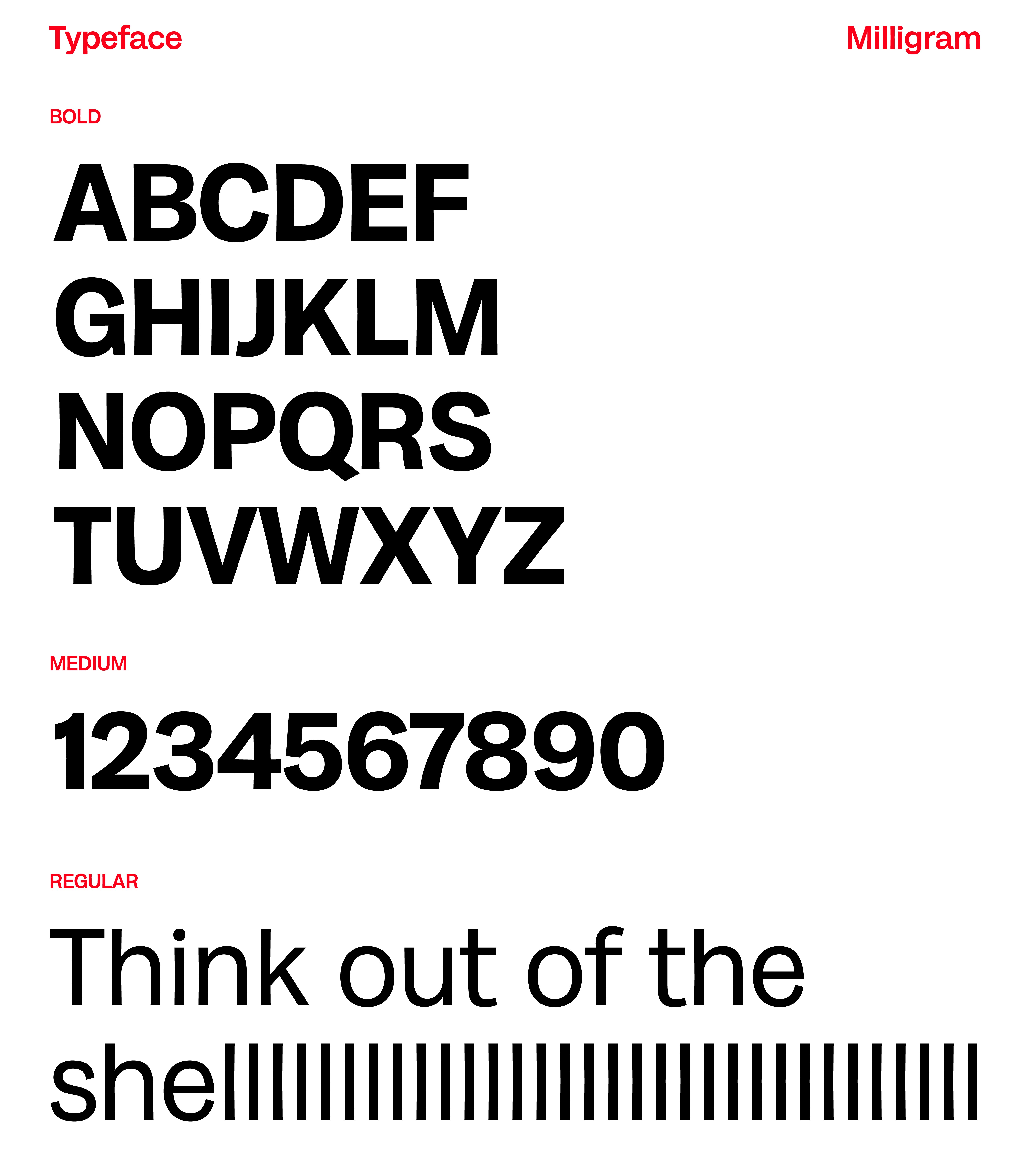 For body text, we chose "Milligram," a grotesque sans typeface designed by Cosimo Lorenzo Pancini and Andrea Tartarelli.