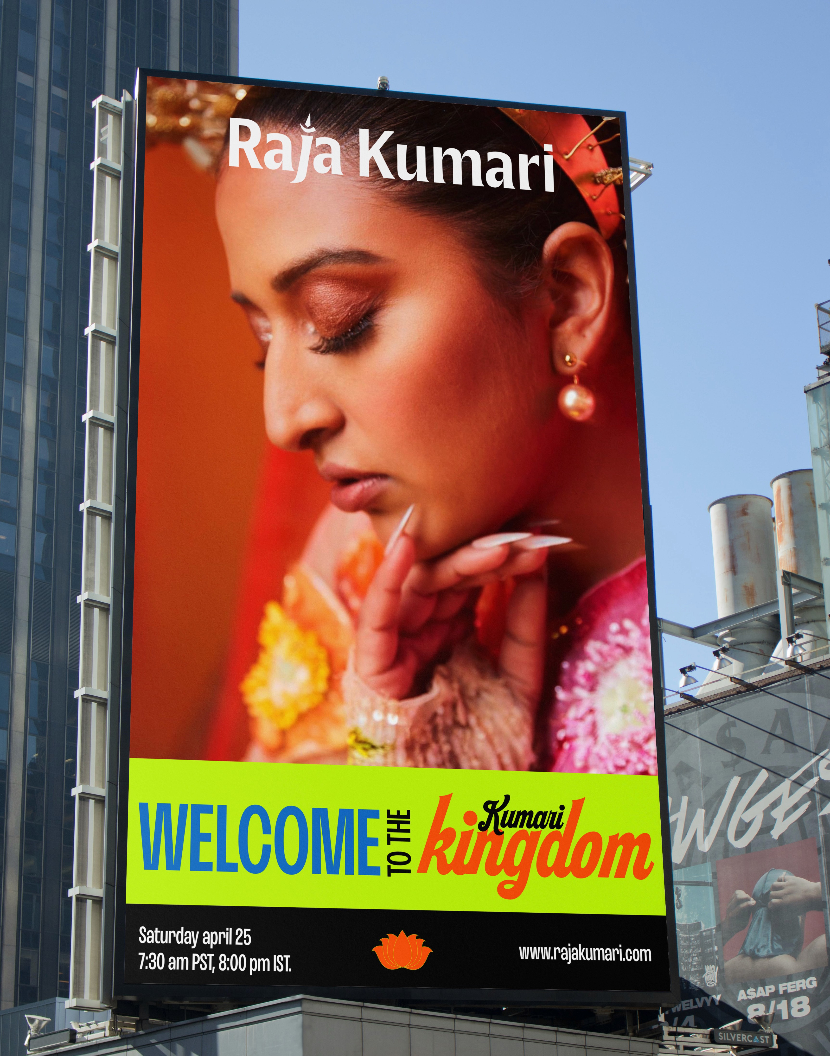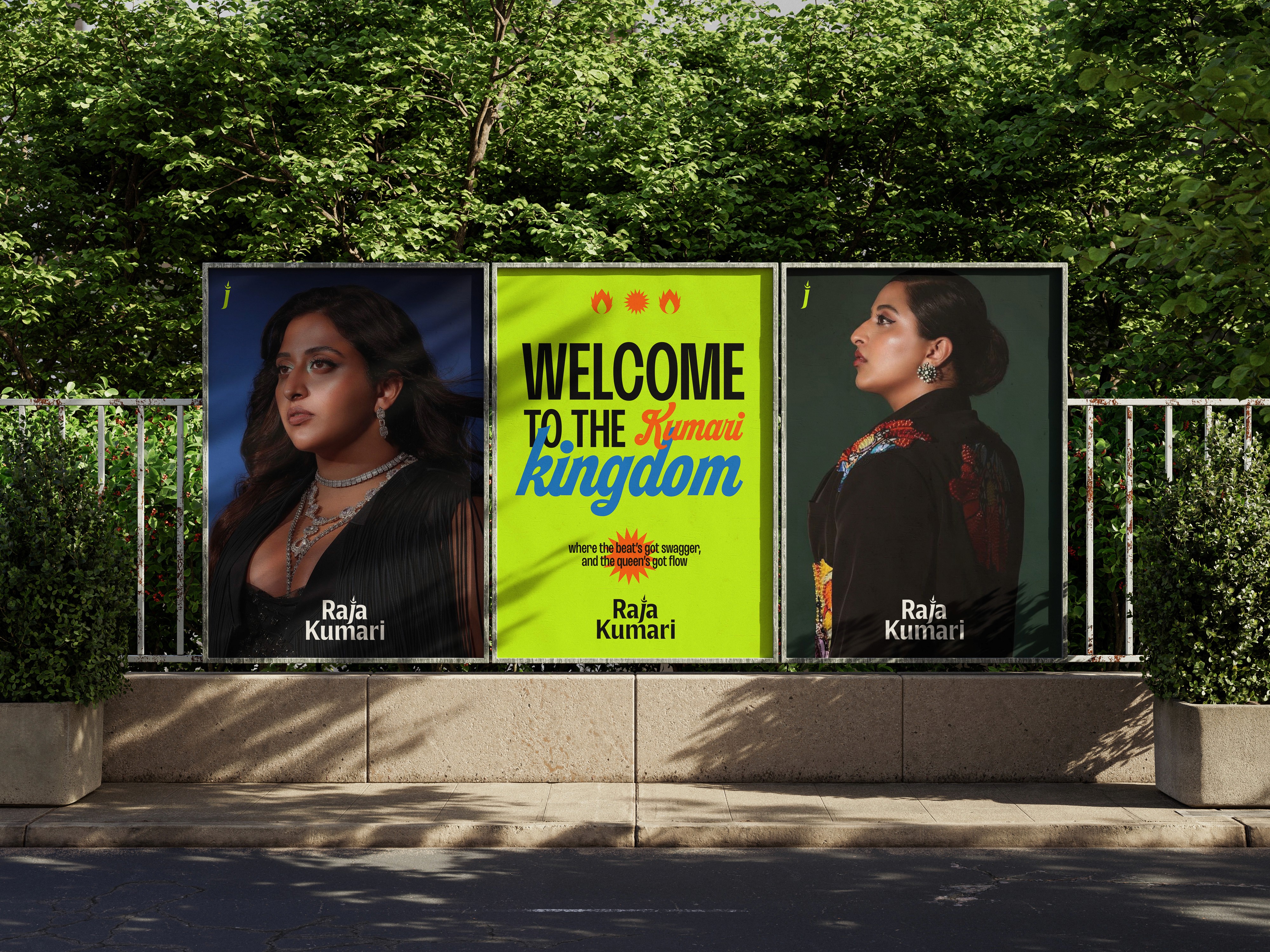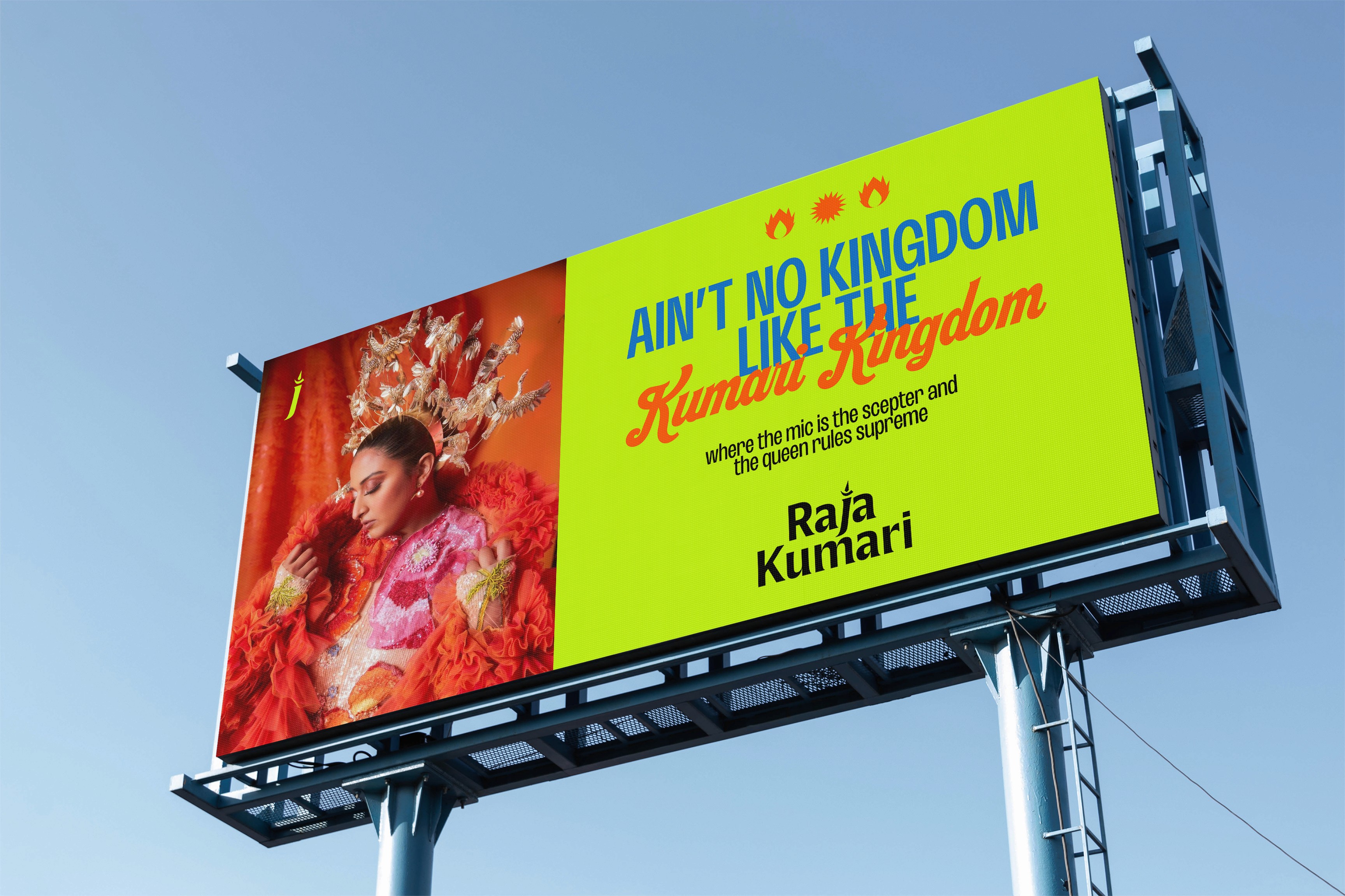 "Welcome to the Kumari Kingdom." It reflects Raja Kumari's reign over a space where music, culture, and identity unite. Her kingdom invites people into a realm where tradition meets rebellion, and power merges with artistry, offering every listener the freedom to express themselves.