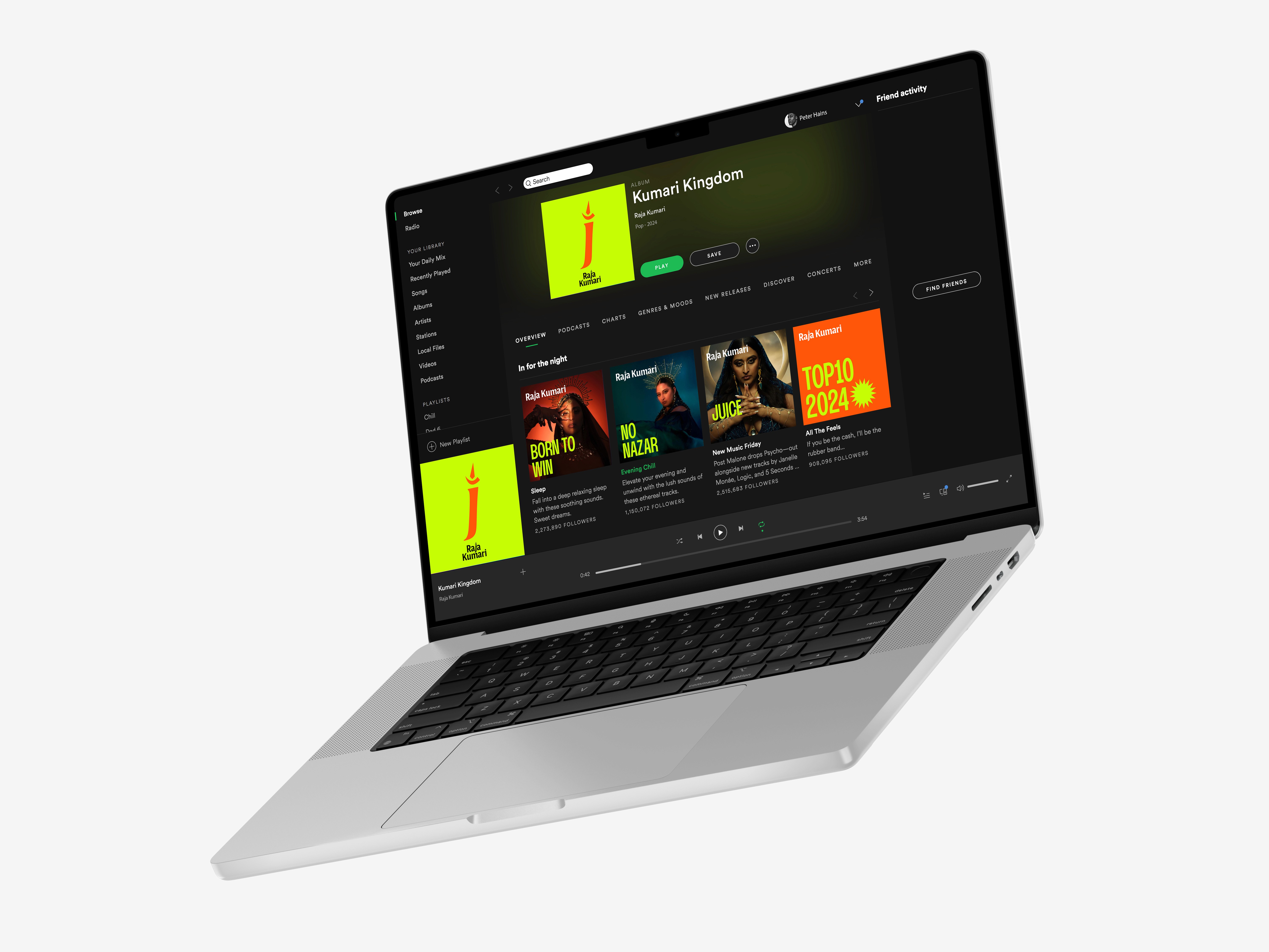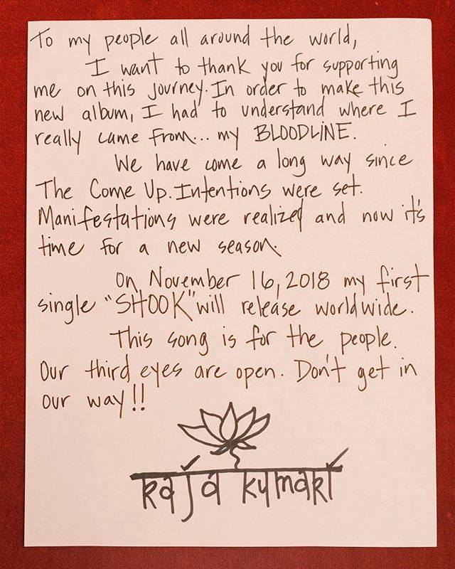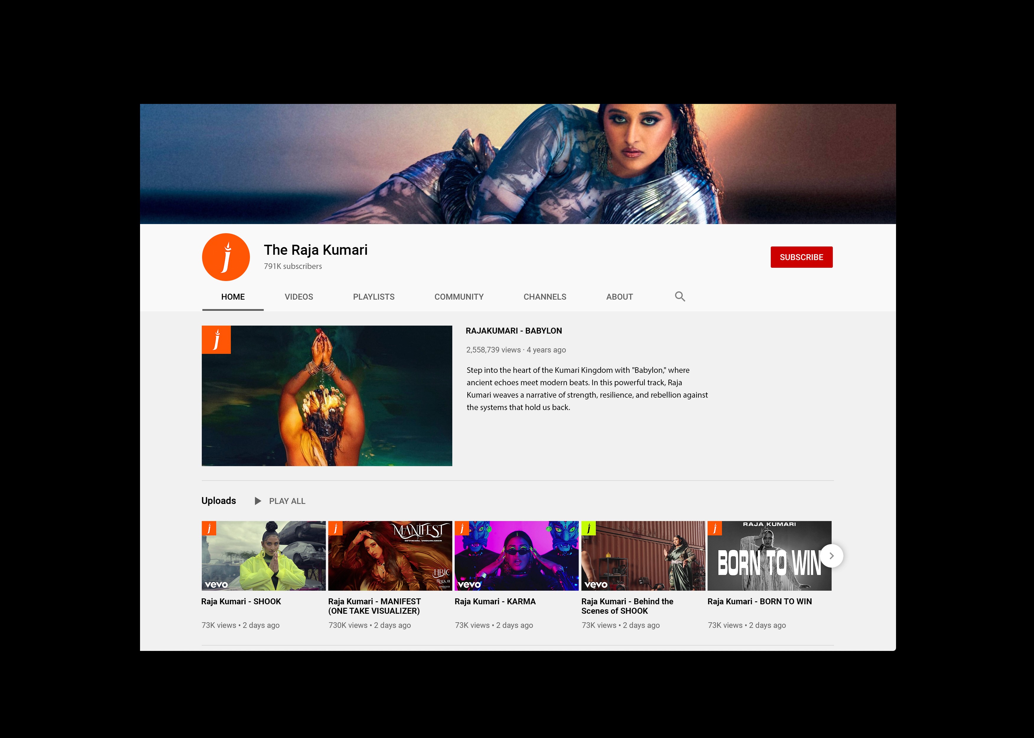 "Welcome to the Kumari Kingdom." It reflects Raja Kumari's reign over a space where music, culture, and identity unite. Her kingdom invites people into a realm where tradition meets rebellion, and power merges with artistry, offering every listener the freedom to express themselves.