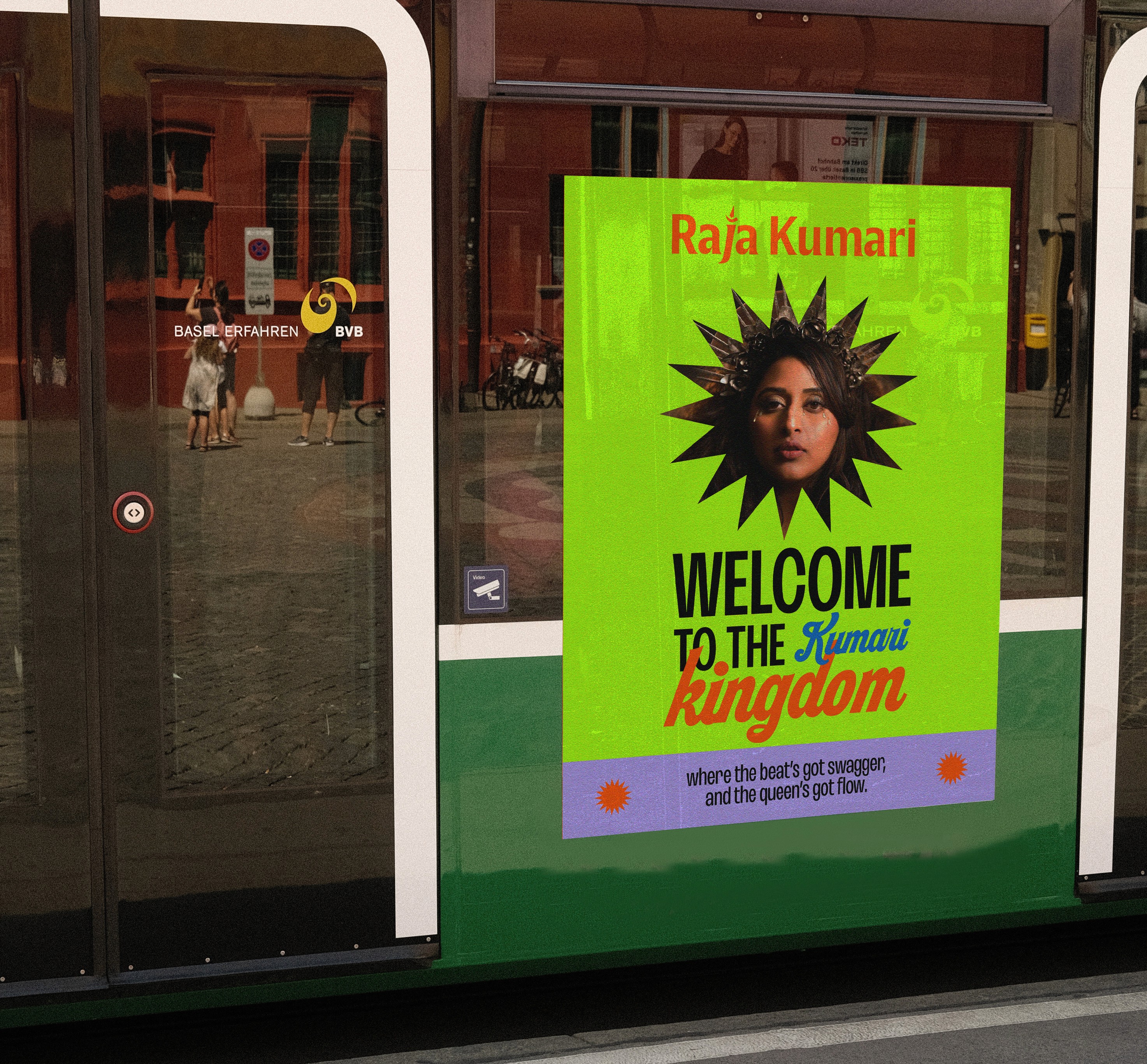 To connect authentically with Raja Kumari's fans, we explored her identity as a bridge between art and culture. Fans see her as a fearless voice challenging the norm, blending her cultural roots with modern beats. She’s an innovator who embodies self-empowerment, cultural pride, and the bold fusion of East and West, resonating through every note and rhythm she creates.