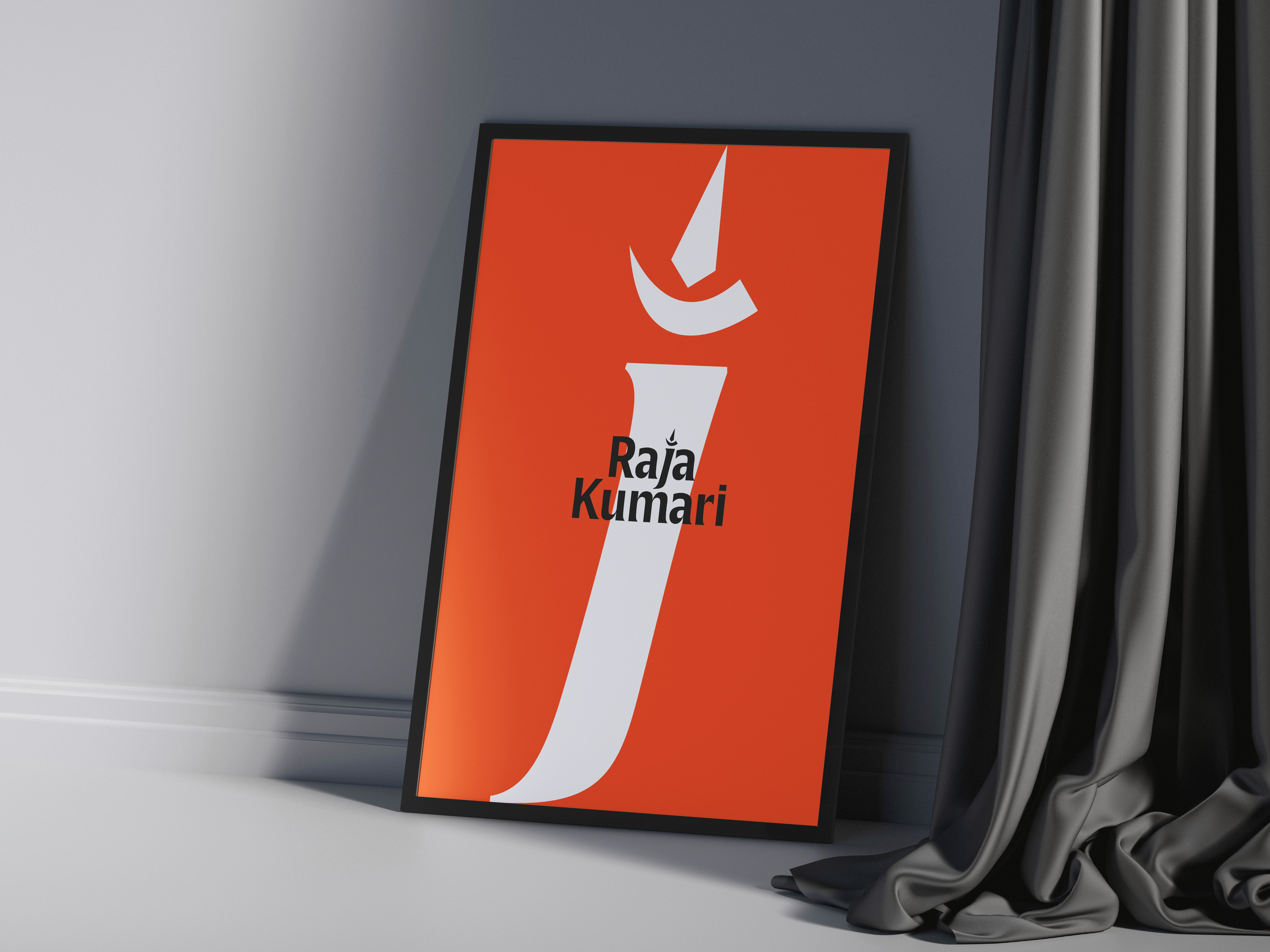The monogram "J" for Raja Kumari's brand draws inspiration from the shape and symbolism of a sword. By incorporating the sleek, sharp lines of a sword into the design of the "J," we created a monogram that embodies her warrior spirit while maintaining elegance, merging tradition with a modern edge.