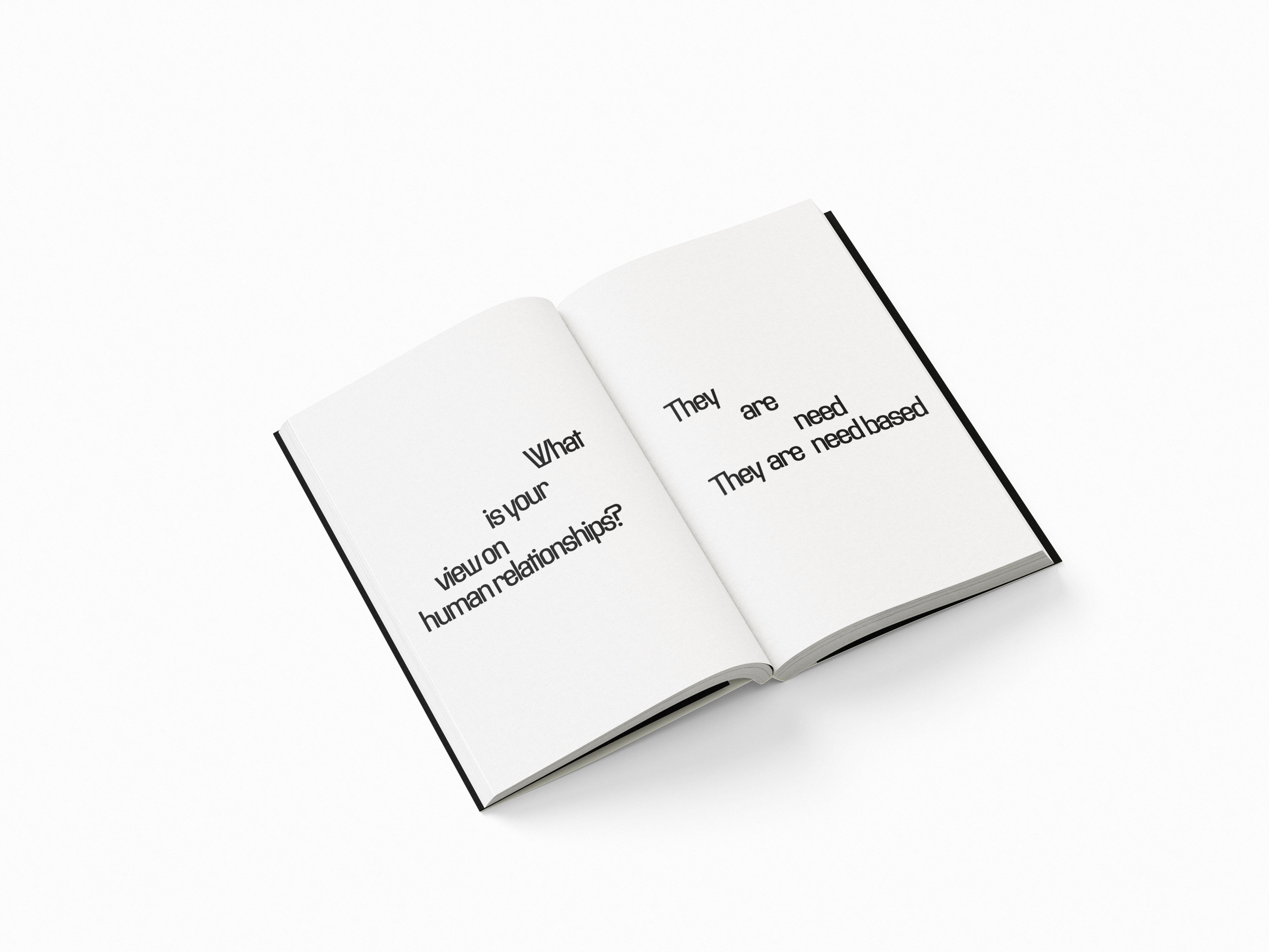 For single-page reactions, I used different fonts to distinguish questions from reactions, emphasizing their distinct tones. By aligning the number of lines in both, the layout reinforces the conceptual balance between the question and its reflective response.